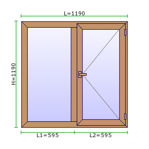 Fereastra in 2 canate, unul fix in stanga, unul cu deschidere batanta in dreapta.